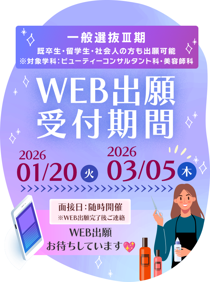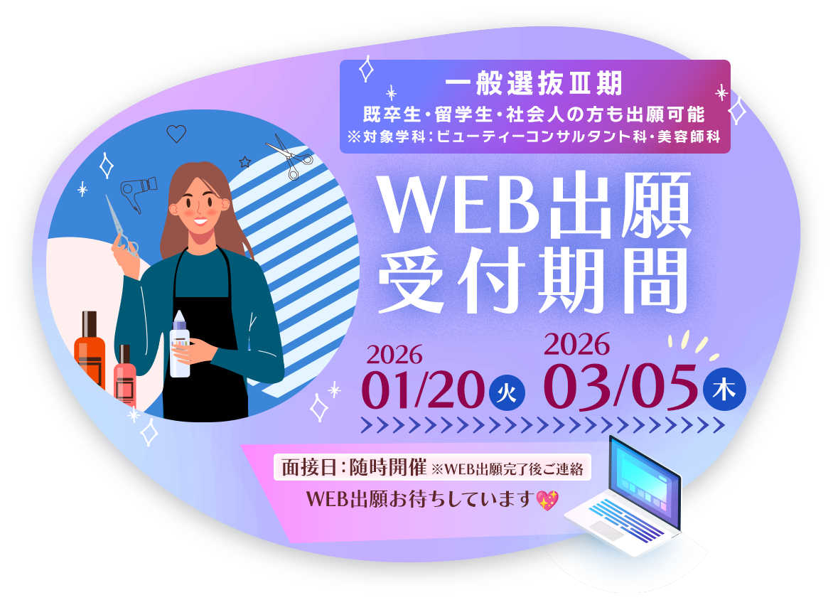 また、万が一卒業時に美容師国家資格を取得できなかった場合、取得できるまで技術指導を行います。