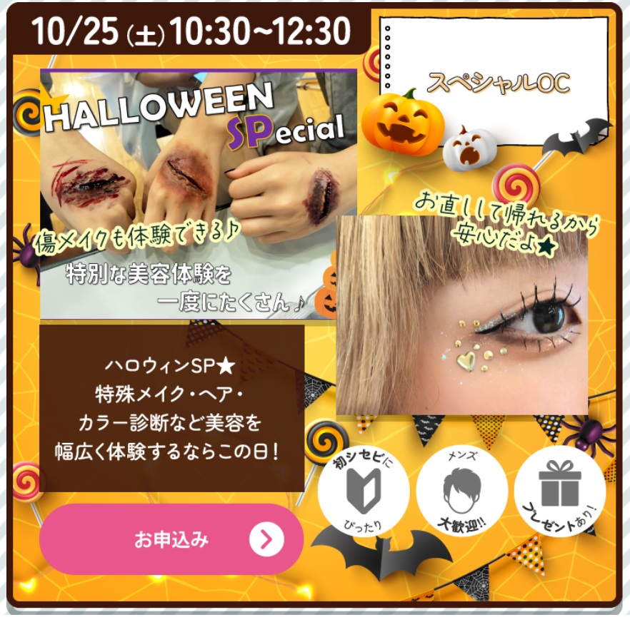 本格的な特殊メイクやキラキラメイク、ヘアアレンジなど