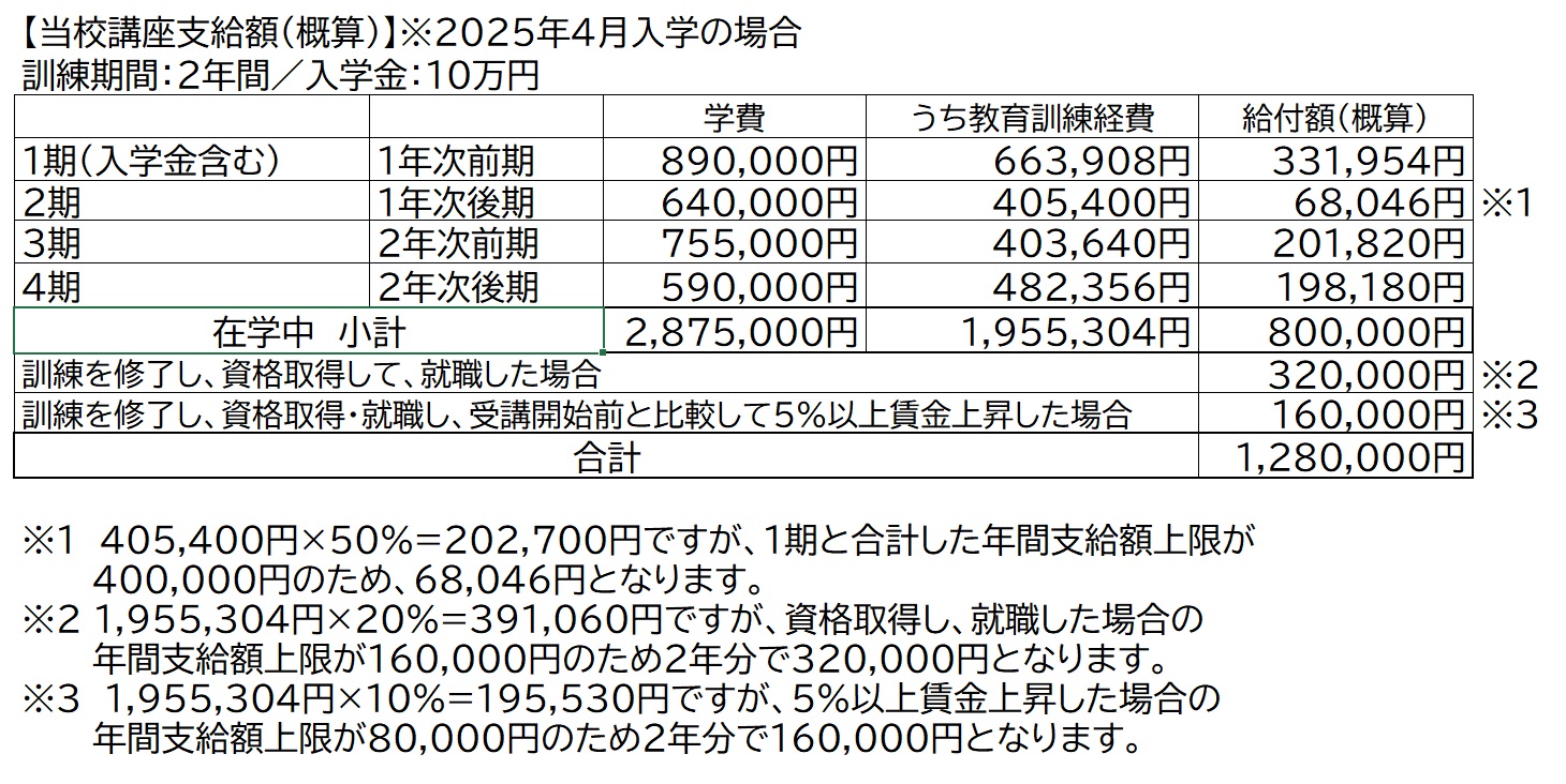 教育訓練給付金(美容師科)