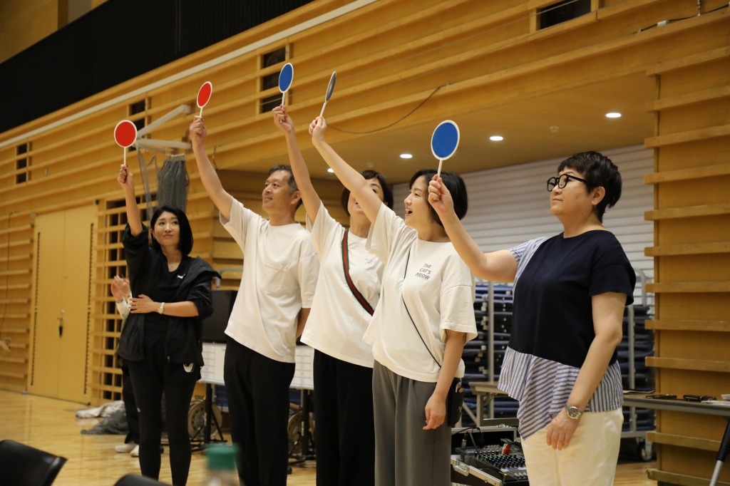 早速、運動会の歌でお馴染みの「ゴーゴーゴー」を赤と青に分かれて熱唱。